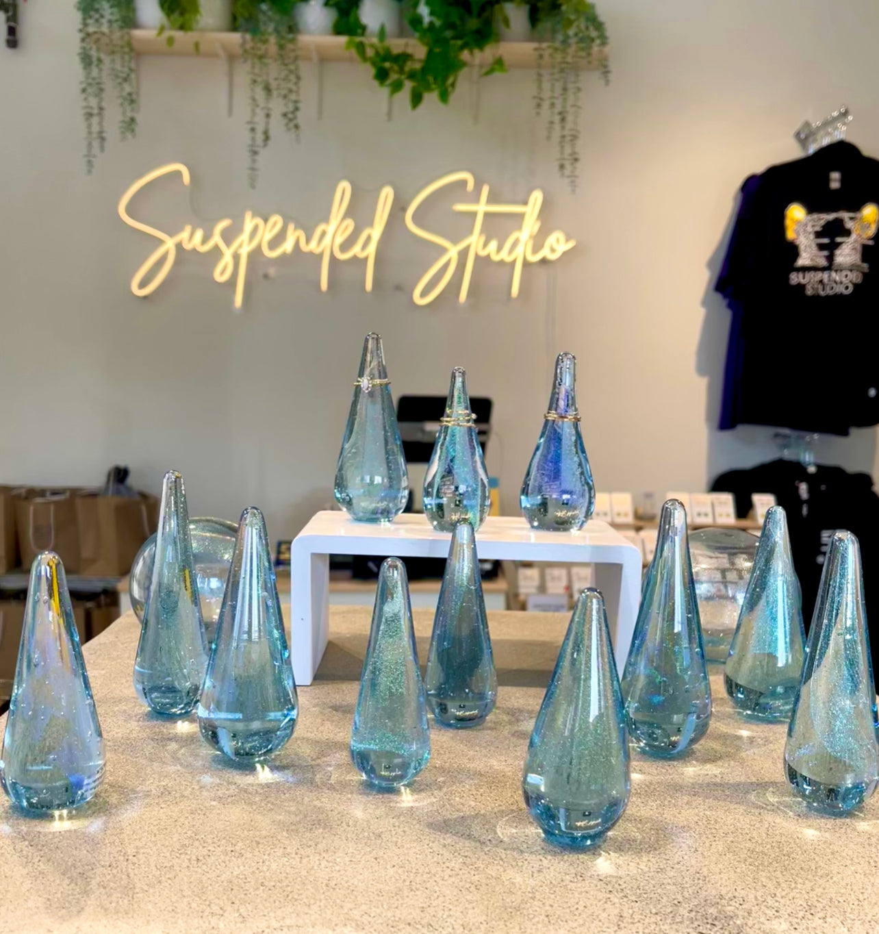 Effortlessly display your favourite rings with these adorable Raindrop Ring Holders. Perfect for rainy day fashionistas or anyone who loves a whimsical touch. These ring holders bring a touch of charm to any dresser or vanity. Rain or shine, your rings will always have a special place to rest. Dimensions: approximately 4.5 inches tall x 2 inches wide***All Raindrop Ring Holders are made to order and require a minimum of 2 weeks for creation before shipping and/or pick up. Due to the handmade nature of these ring holders, there may be small variances in size and colour.