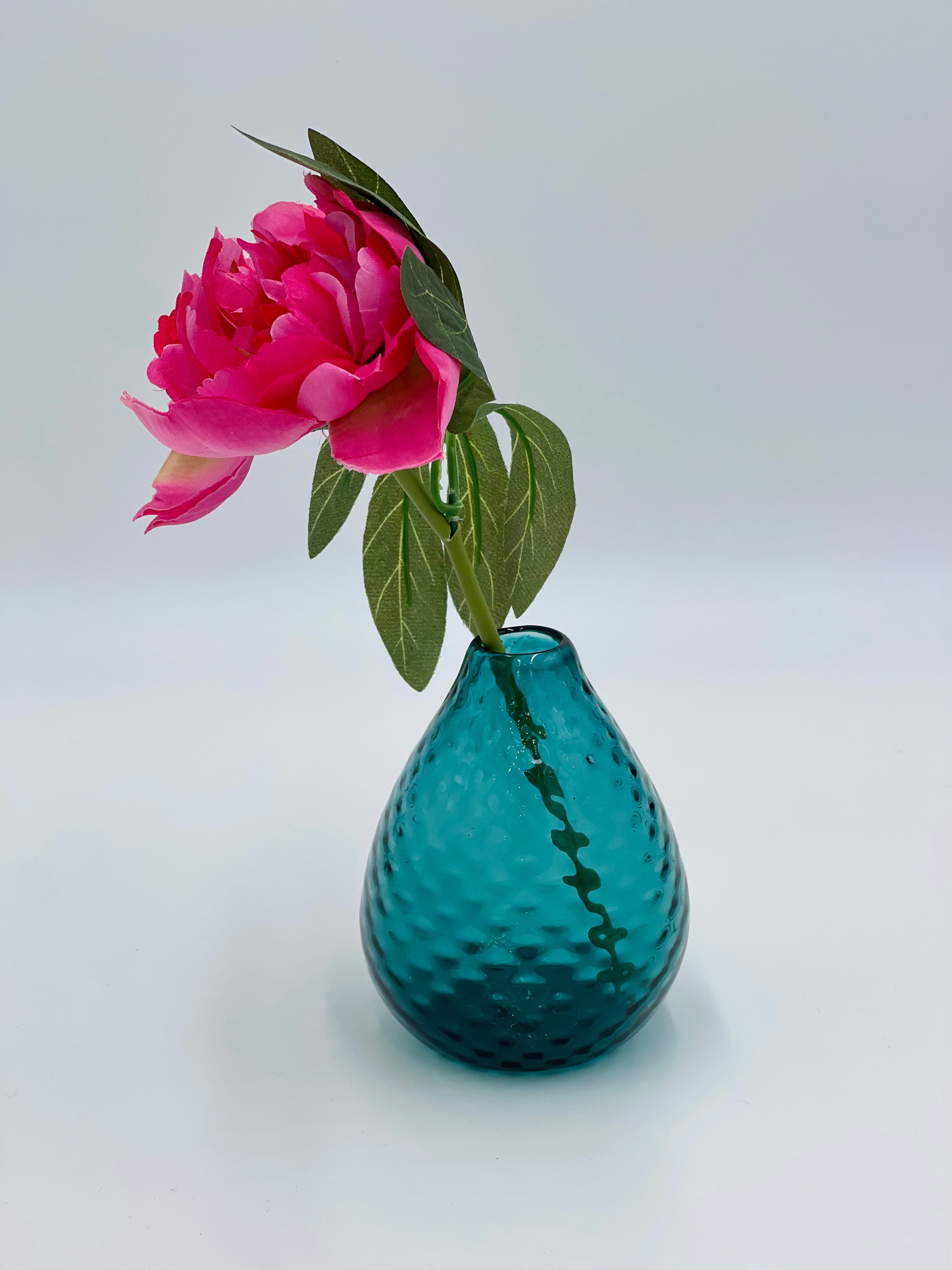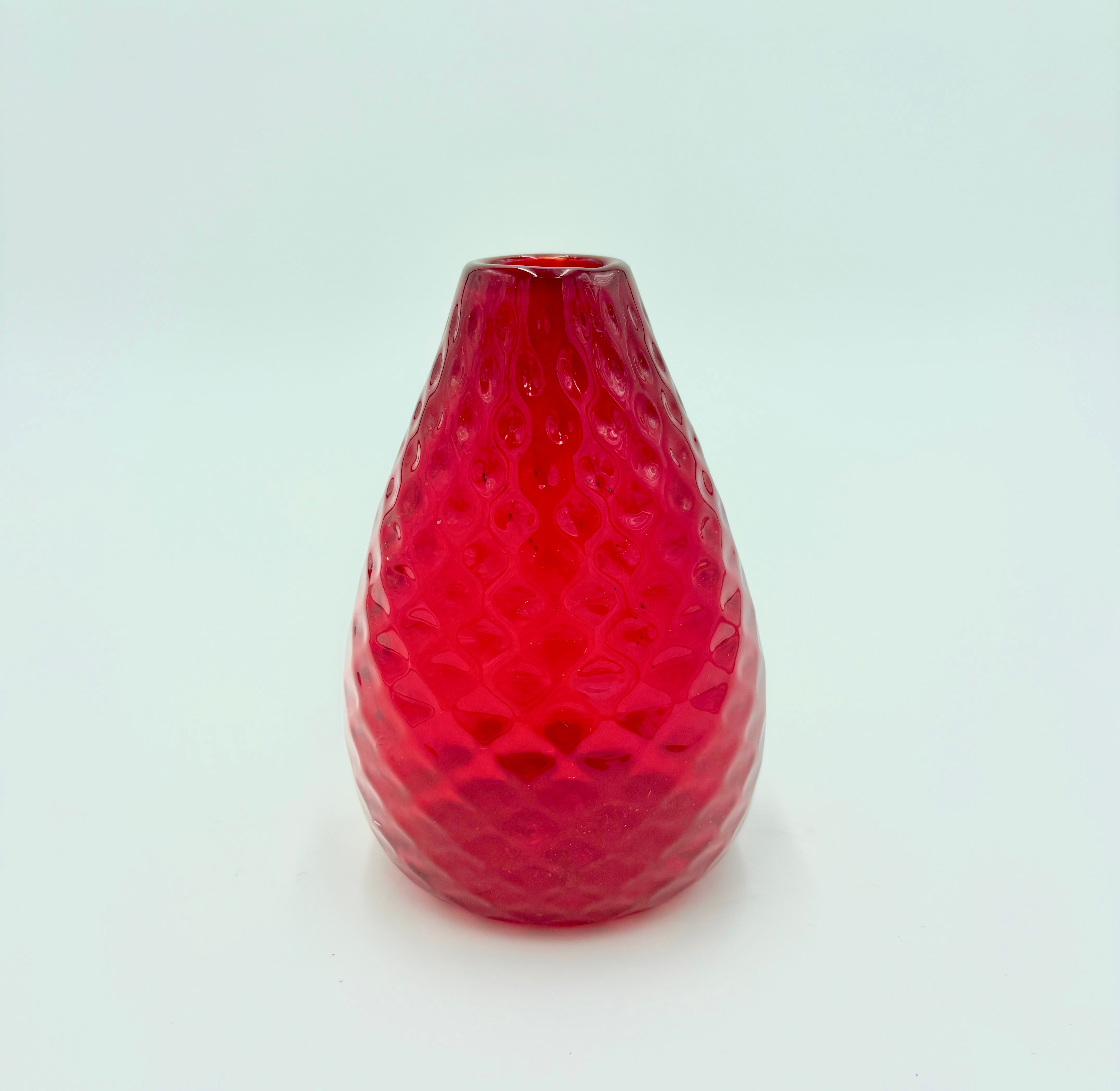 These small bud vases feature a unique textured design, adding a touch of elegance to any room. Perfect for displaying your favorite flowers, these vases are a must-have for any floral enthusiast. Enhance your home decor with these stylish and versatile vases. Each Vase is one-of-a-kind and the glass used varies slightly in size and shape. Dimensions: Approx. 4 x 4 inches ***All bud vases are made to order and require a minimum of 2 weeks for creation before shipping and/or pick up. Due to the handmade nature of these vases, there may be small variances in size and colour.