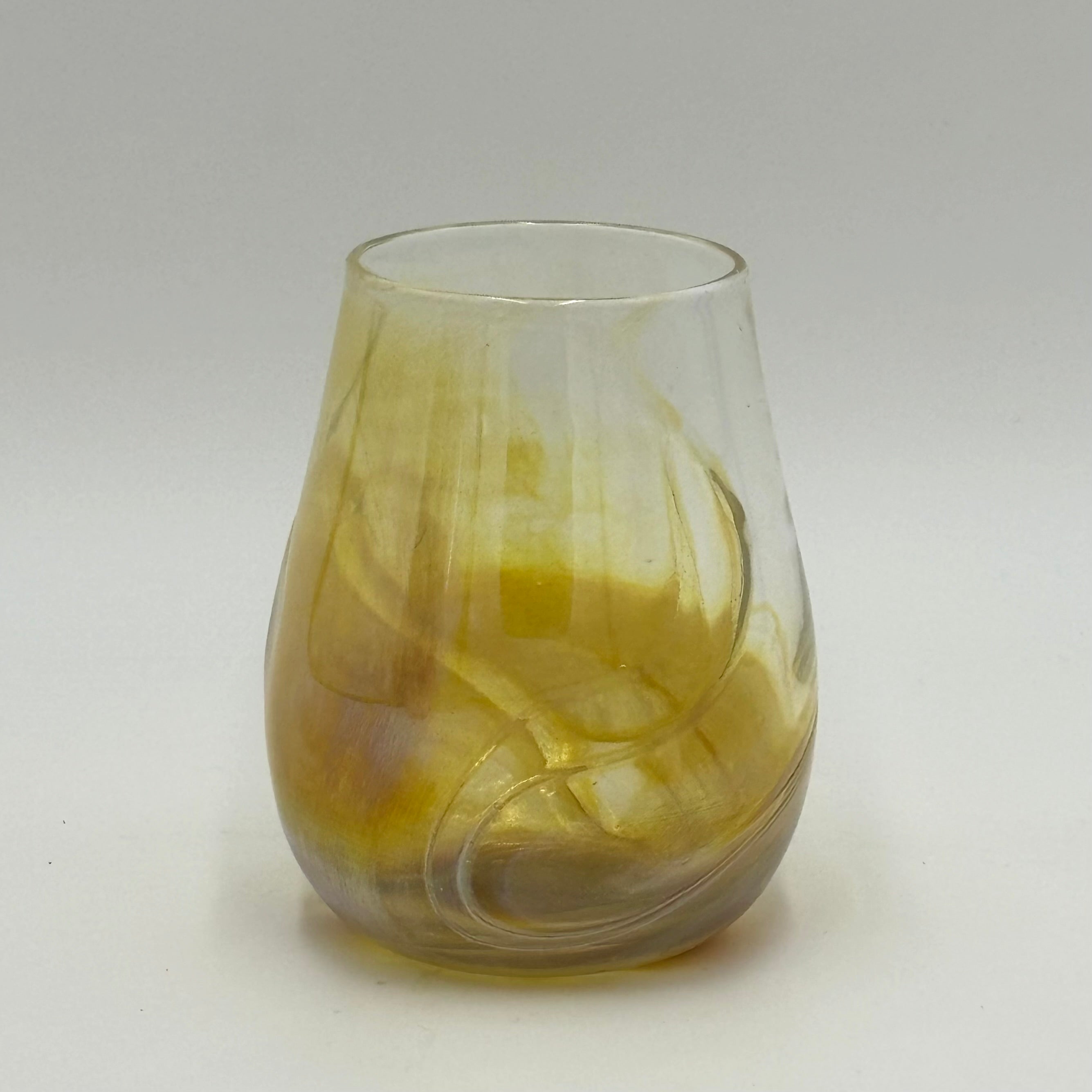 Elevate your wine-drinking experience with our colorful stemless wine glasses. Sip in style and add a pop of colour to your table. Perfect for entertaining or a relaxing evening at home. Cheers! Each wine glass is one-of-a-kind and the glass used varies slightly in size and shape.Dimensions: Approximately 3.5 x 3.5 x 4 inches ***All Stemless Wine Glasses are made to order and require a minimum of 2 weeks for creation before shipping and/or pick up. Due to the handmade nature of these glasses, there may be small variances in size and colour.
